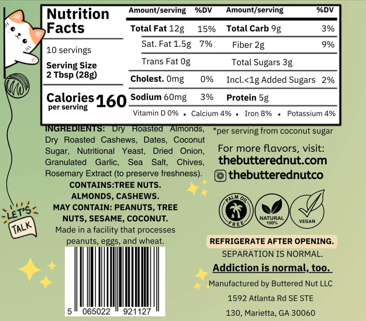 Tasting notes: Slightly sweet, subtle roasted garlic, chives, and onion. Mild cheesy flavor from nutritional yeast.